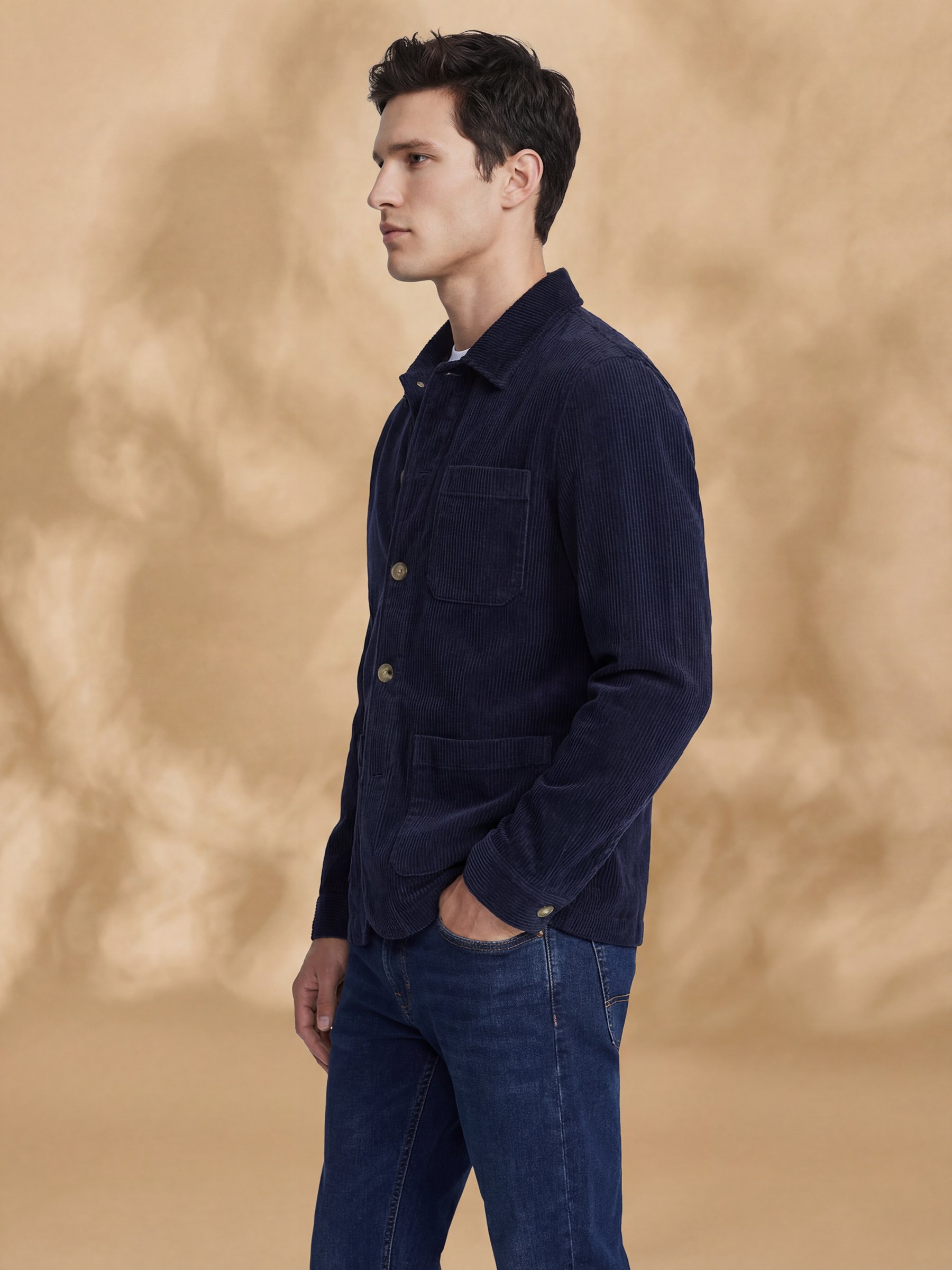Forge your own narrative in the Argo Navis Pathmaker Corduroy Shirt. The usual is predictable; this shirt is not. Crafted from deep navy corduroy with a structured yet supple feel, it moves with you, from shadow-filled streets to uncharted territories. Its utilitarian design, featuring three distinct patch pockets and a classic collar, is built for those who question everything and own the unknown. This isn't just a layer; it's a statement for the journey with no maps and no limits.